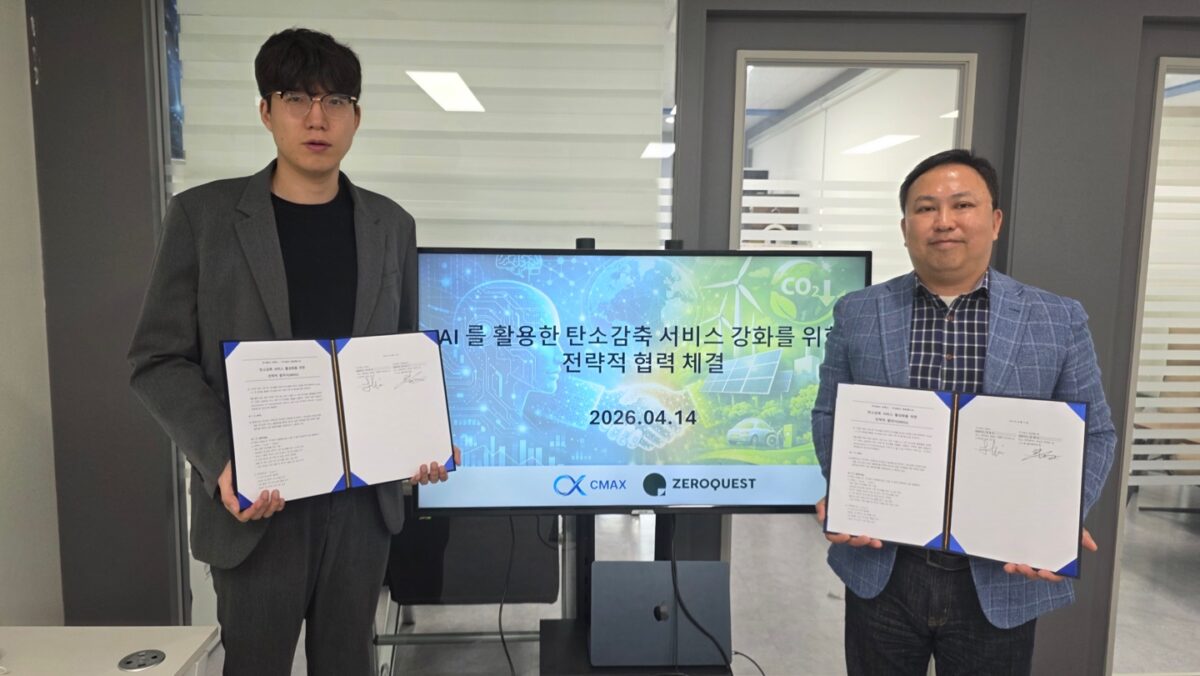 제조현장과 공급망 잇는 통합 탄소중립 관리 모델 구축 위해 MOU 체결. 산업 데이터 플랫폼 구축 전문 기업 주식회사 씨맥스와 넷제로 솔루션 기업 주식회사 제로퀘스트가 4월 13일 제조 산업 및 기업 활동 전반의 탄소배출 관리와 감축을 위한 전략적 협력 양해각서(MOU)를 체결했다고 16일 밝혔다.